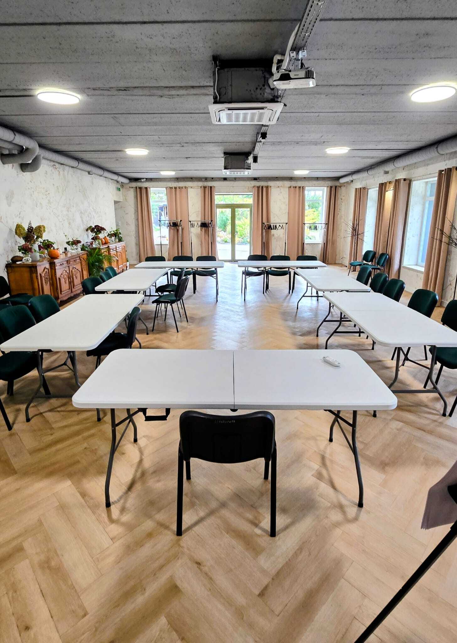 Posiadamy komfortowe warunki do prowadzenia różnego rodzaju warsztatów oraz szkoleń. Dysponujemy dużą salą oraz zapleczem kuchennym. Nasz obiekt wyposażony jest w niezbędny sprzęt audiowizualny oraz rzutnik. Serdecznie zapraszamy do kontaktu, abyśmy mogli opowiedzieć więcej o naszych możliwościach dla Twoich Klientów.